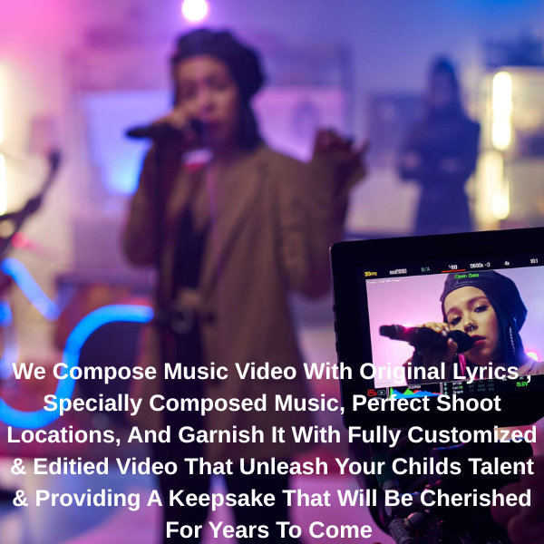 We Compose Music Video With Original Lyrics , Specially Composed Music, Perfect Shoot Locations, And Garnish It With Fully Customized & Editied Video That Unleash Your Childs Talent & Providing A Keepsake That Will Be Cherished For Years To Come.